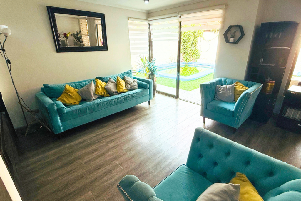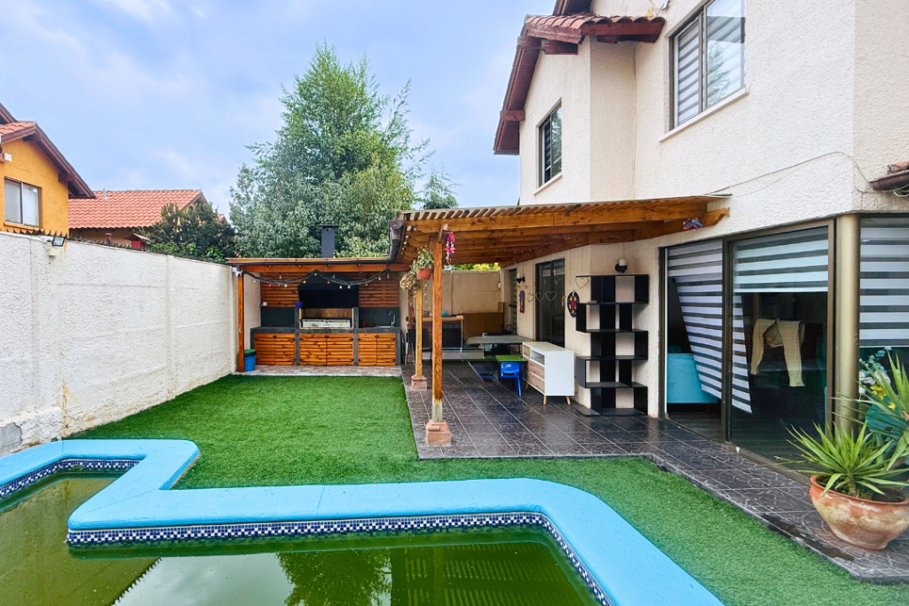 Portal Propiedades vende hermosa casa con buenas transformaciones, cuenta con dormitorio principal en suite en primer piso y 3 dormitorios, un baño y sala de estar en segundo piso, además baño adicional para visitas. Patio cómodo con buen quincho y piscina.