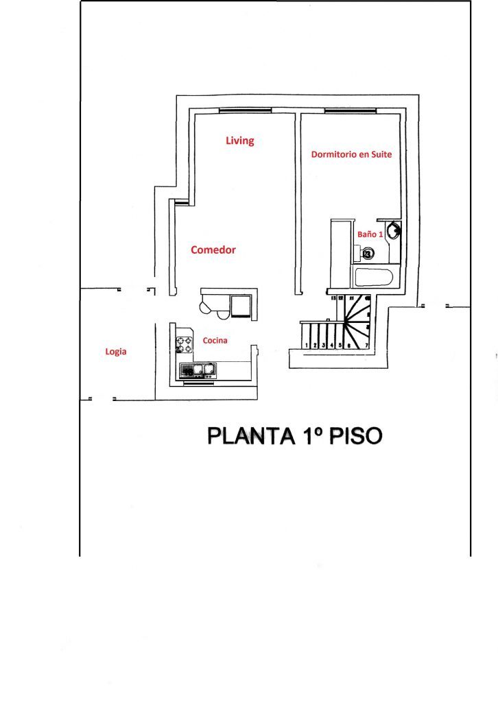 PRIMER PISO: Living-Comedor, Dormitorio Principal en Suite, Cocina Amoblada y Equipada, salida a Logia techada.